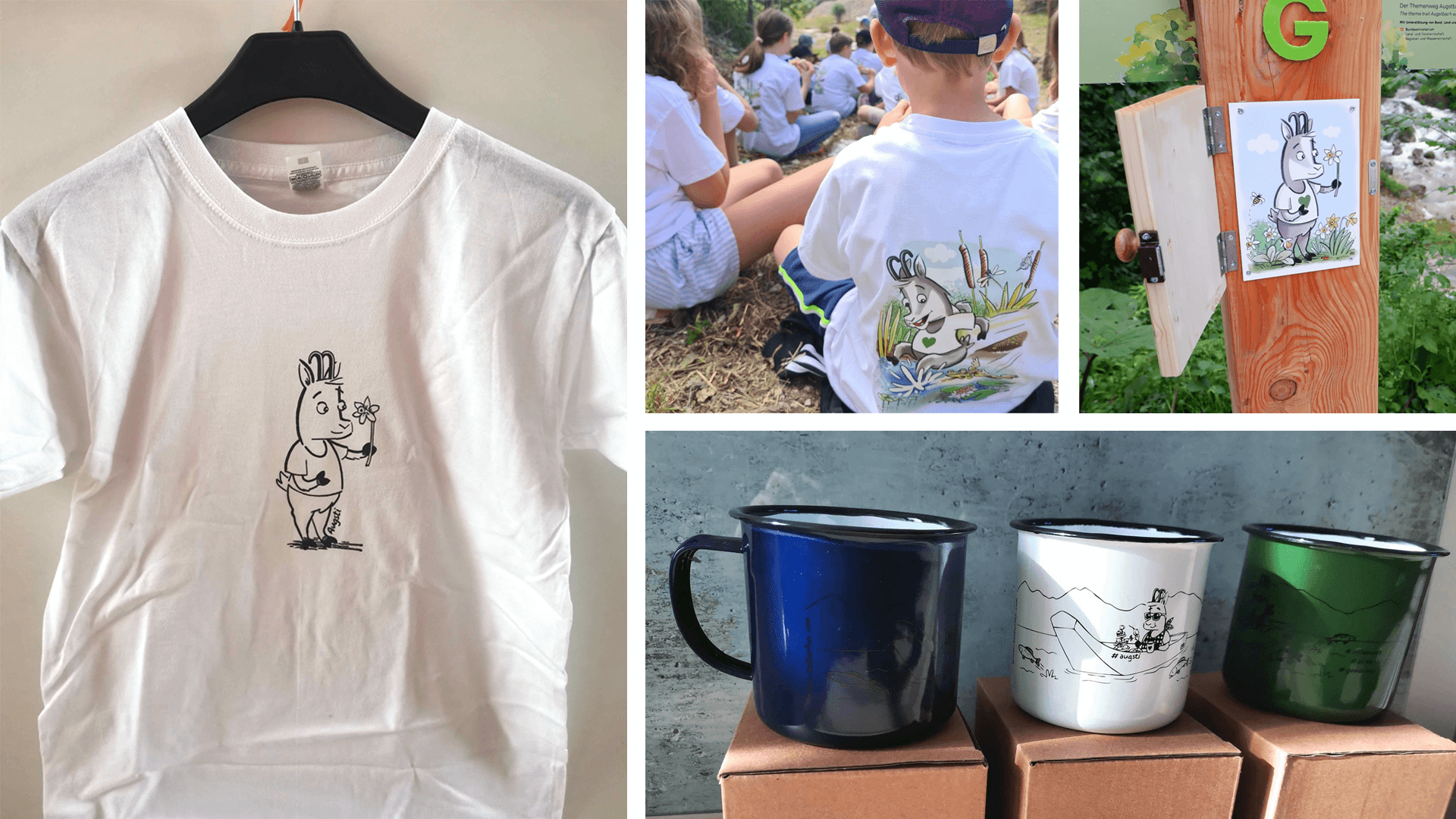 This little figure was designed for the “Augstbach theme trail” in the municipality of Altaussee. The character design of AUGSTI – that’s his name – is intended to appeal to the target group of children, to represent an animal from the surrounding area – in this case the forest chamois was chosen – and AUGSTI should appeal to both boys and girls. On the “Augstbach themed hiking trail”, the little forest chamois presents the individual stations in a child-friendly way, such as whitewater stabilisation, water protection, the forest as a recreational area, etc.