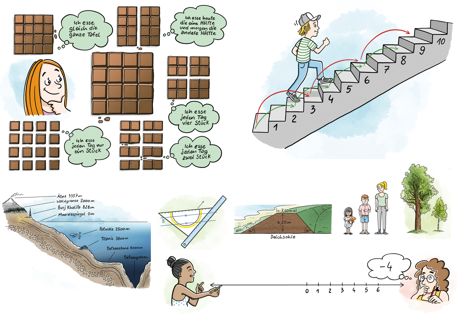Diese Zeichnungen wurden für das Schulbuch-Verlagshaus VERITAS erarbeitet. Diese Illustrationen sind im speziellen für eine Mathematikbuch-Reihe. Große und kleine Zeichnungen kommen bei den einzelnen Aufgaben und Übungen zum Einsatz und erleichtern den Schülerinnen und Schülern den Zugang zum Lernstoff.